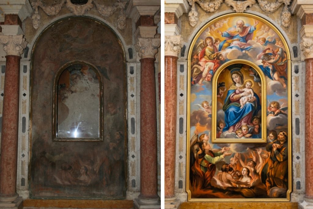 Al centro dell’altare è presente un affresco raffigurante la vergine.