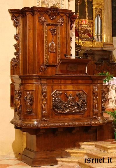 6) lo spostamento del pulpito che dalla parete nord venne portato a fianco dell’altar Maggiore;