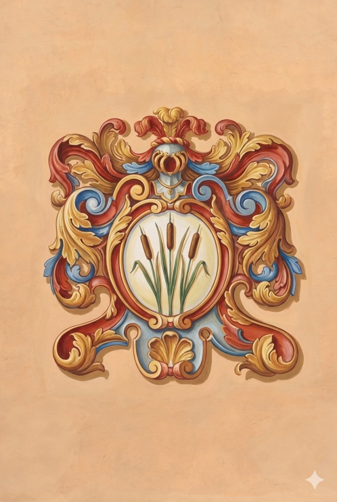 Inquartato sovrastato da corona. Proponiamo una possibile ricostruzione digitale realizzata con l’intelligena artificiale.