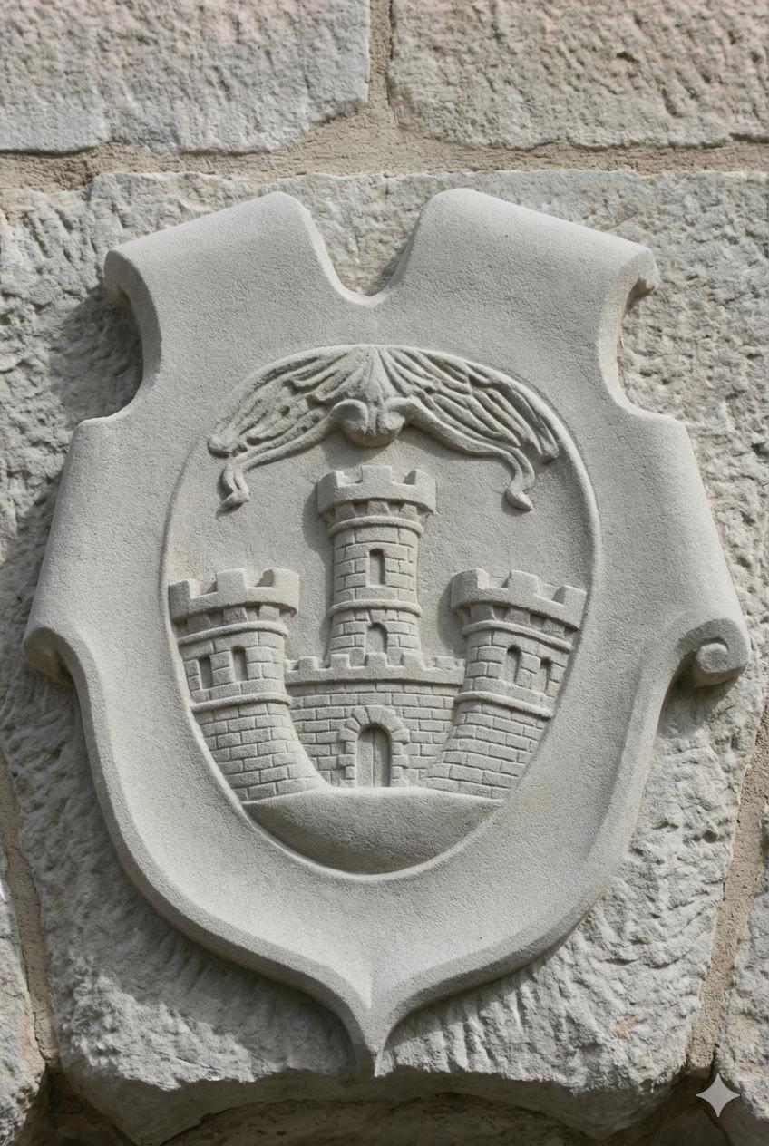 Inquartato sovrastato da corona. Proponiamo una possibile ricostruzione digitale realizzata con l’intelligena artificiale.