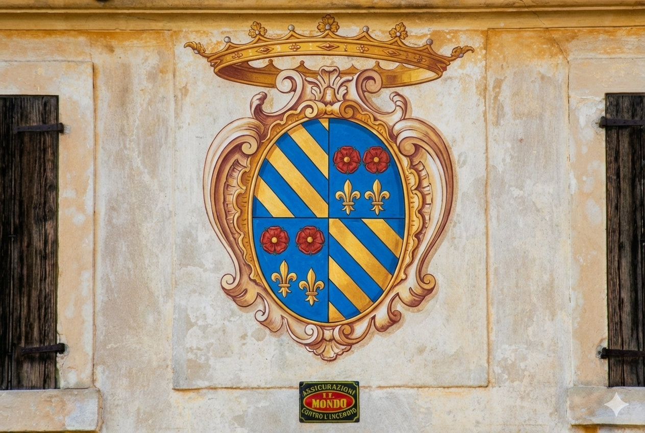 In ogni antica corte è raffigurato, una o più volte, lo stemma della famiglia nobile proprietaria, a perenne ricordo del suo passaggio.