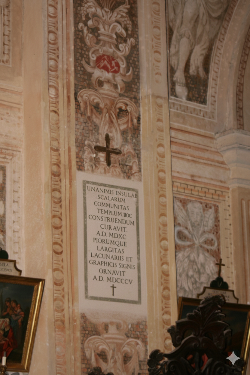 VNANIMIS INSVLAE SCALARUM COMVNITAS TEMPLVM HOC CONSTRVENDVM CVRAVIT.