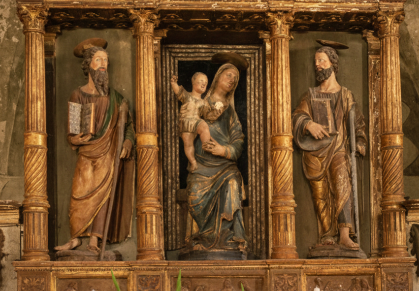 Al centro la Madonna col Bambino e ai lati i santi Simone e Giuda.