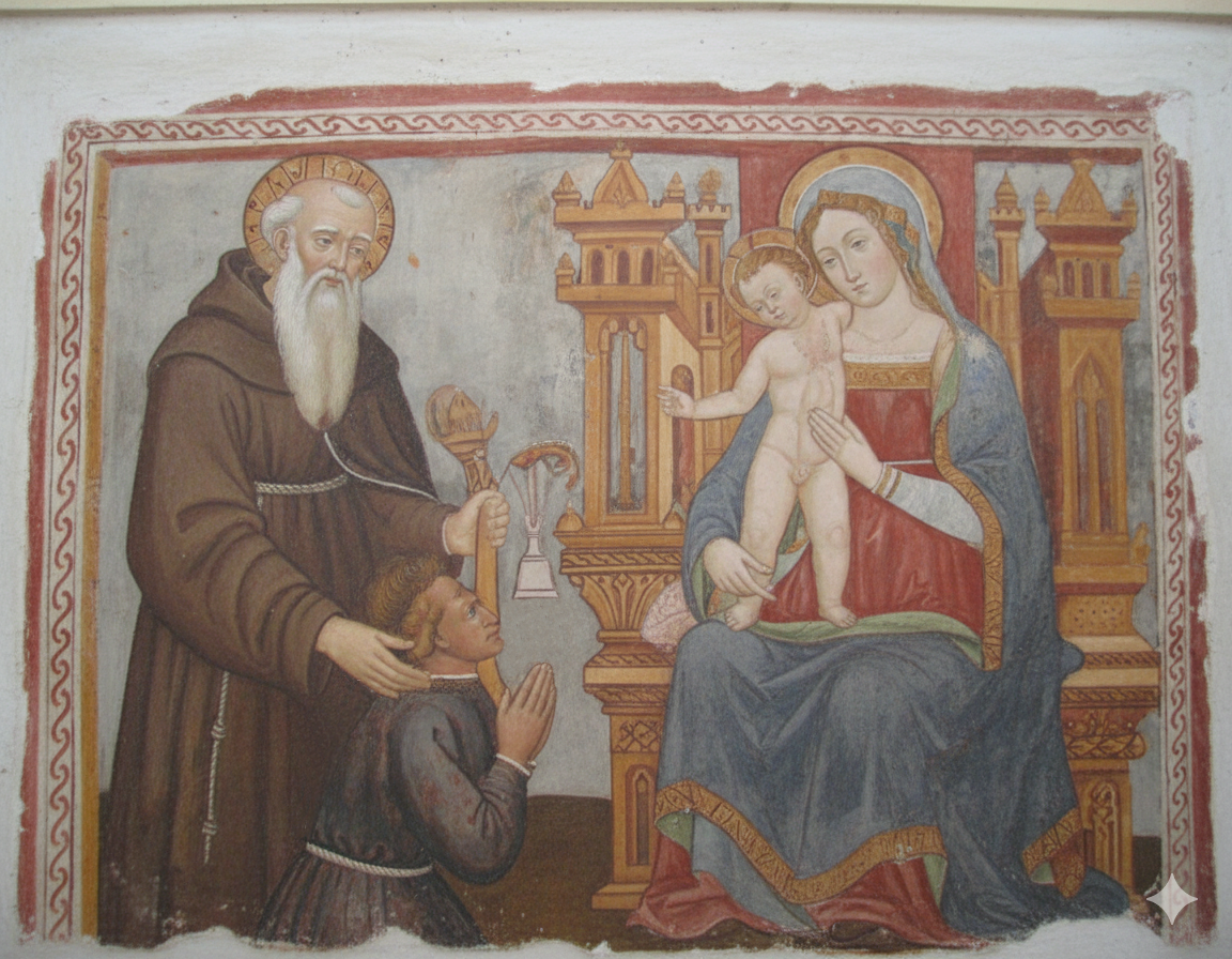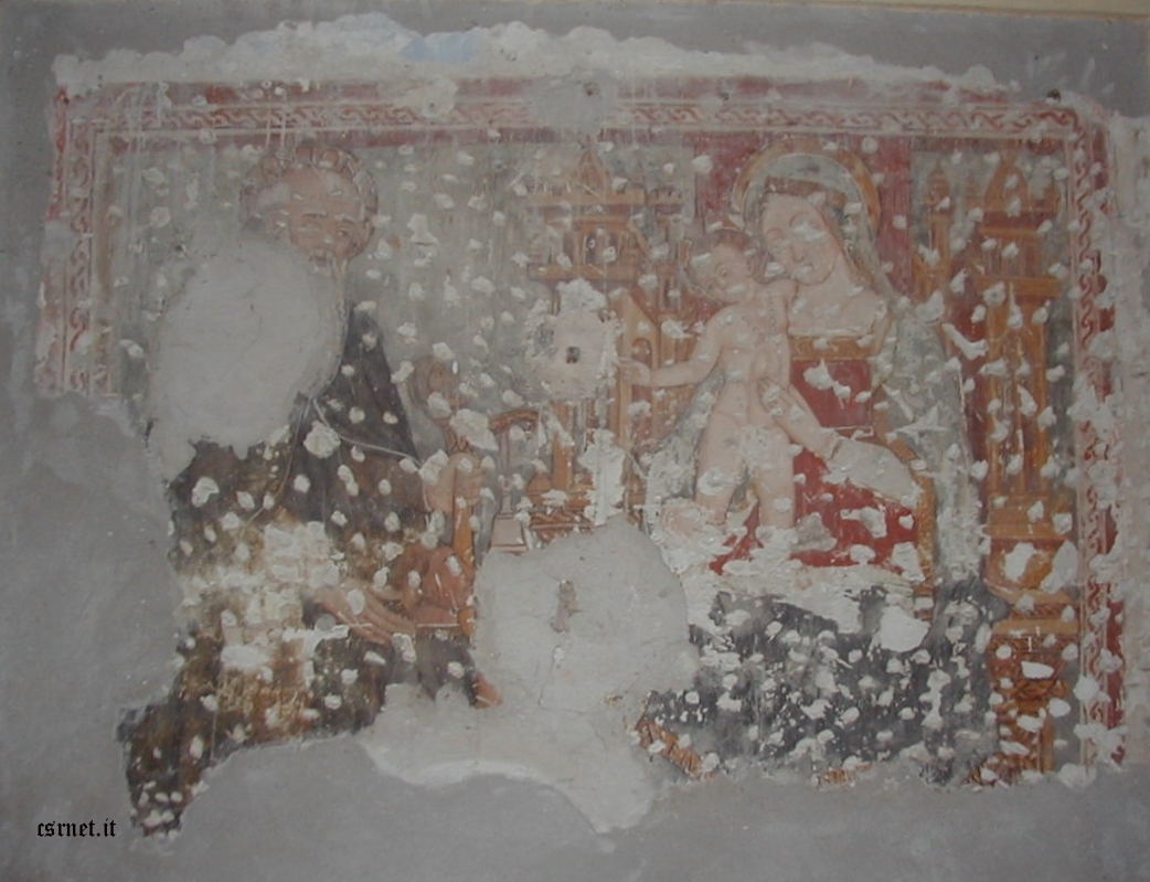 Vergine col bambino Convento di San Francesco alla Gabbia Affresco raffigurante la Vergine col Bambino, di fronte un santo monaco.